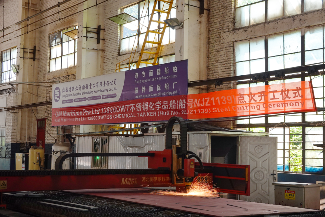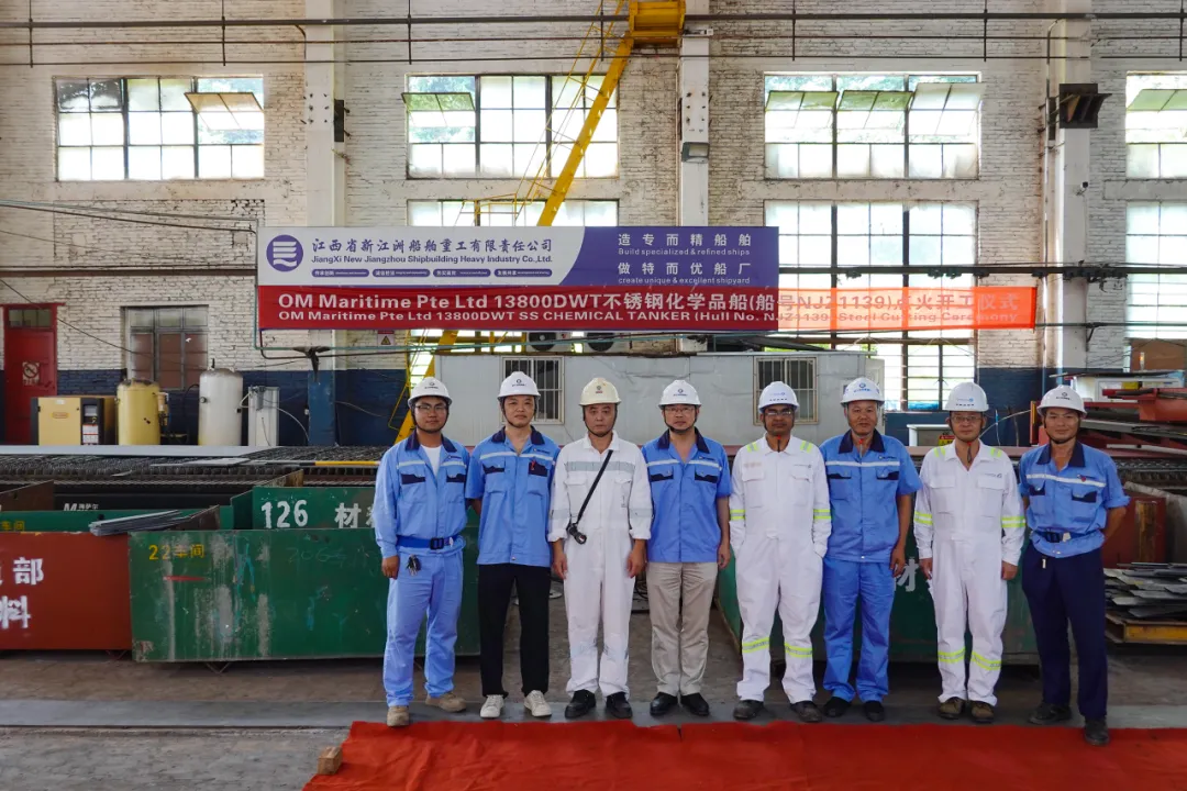 2025年9月5日上午9時58分,新江洲船舶重工有限責任公司為新加坡船東OM Maritime公司建造的第二艘13800DWT不銹鋼化學品船(船號NJZ1139)在分段制造部203車間點火開工。新加坡船東OM Maritime公司現場經理Santi Moy Mandal、船東代表呂飛,法國船級社(BV)驗船師劉平,新江洲副總經理鄒延東、總經理助理馮唐西及相關部門負責人出席儀式。