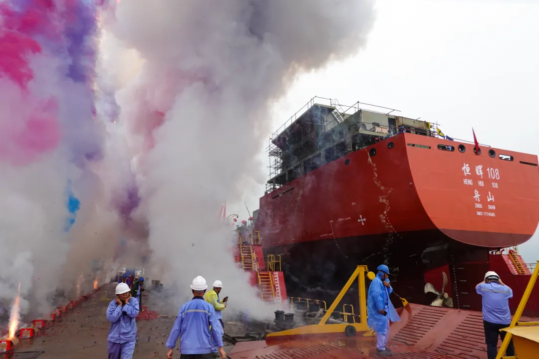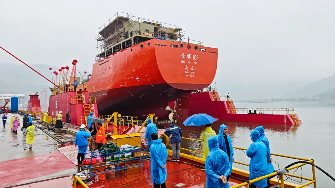 恒暉108總長110.38米,型寬16.5米,型深9.2米,設計吃水5.97米,設計航速12.8kn。該船已于10月15日完成下水作業,此次吉水儀式后,將進入后續舾裝完善與調試階段,不久后可正式交付浙江恒暉海運有限公司第九分公司投入運營,為其進一步拓展化學品運輸業務版圖、提升市場競爭力提供有力支撐。